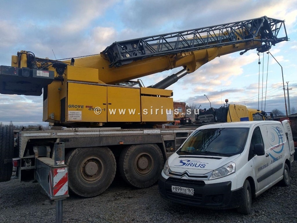 Но, а мы не будем отвлекаться от нашей работы, ведь на этот раз она была не менее интересной. Нам предстояло произвести монтаж терминала КТ-56 и ДУТ LLS 5 для подъемного крана GROVE. Грузоподъемность этого гиганта составляет до 100 тонн, с вылетом стрелы 60 метров. Не впервой «Сириус Навигатор» сталкивается с такой тяжеловесной техникой, но её мощь всегда поражает как в первый раз.